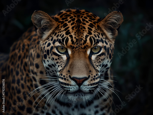 Obraz premium Intense Dramatic Portrait of a Leopard with Piercing Eyes and Detailed Fur...