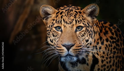 Obraz premium Intense Eye Gazes Striking Leopard UpClose, Showcasing a Perfect Blend of...