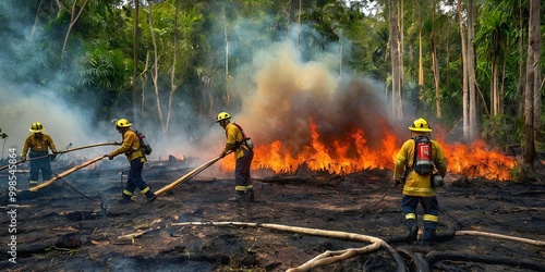 Obraz premium Intense fight against fires in the Amazon rainforest