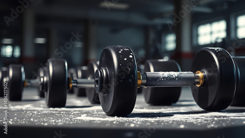 Naklejka premium Intense Fitness Close-up of Dumbbells in a Gym Setting
