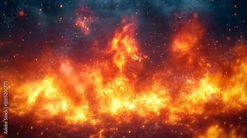 © Hafizd, Fototapeta premium Intense flames burning brightly against a dark and dusky background scene