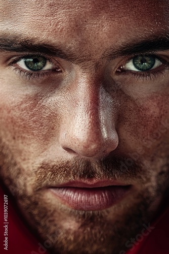 © Piyawat, Fototapeta premium Intense Football Player Close-Up Expression