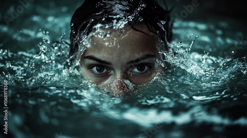 © 69, Obraz premium Intense Gaze Beneath Water Surface