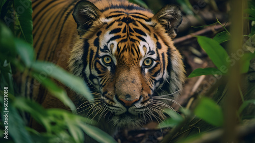 Obraz premium Intense Gaze of a Hidden Jungle Tiger