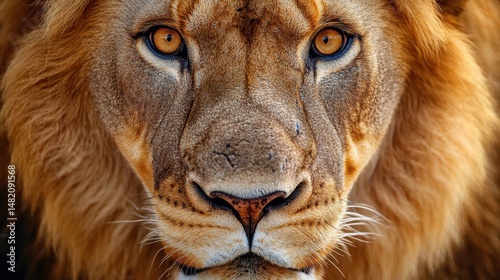 Fototapeta premium Intense gaze of a majestic male lion captured in close-up portrait
