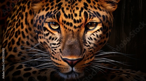 Naklejka premium Intense gaze of a majestic wild leopard close-up