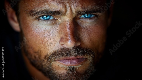Fototapeta premium Intense Gaze of a Man Grappling with an Impending Decision Capturing Anxiety...