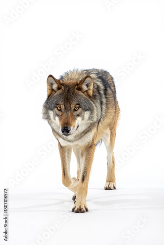 Obraz premium Intense Grey Wolf Portrait on White Background