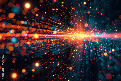 © youriy, Obraz premium Intense light beam in digital abstract data stream