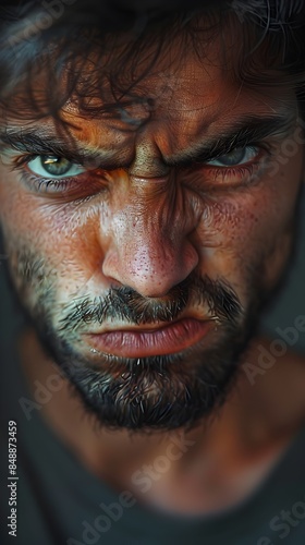 © Thares2020, Fototapeta premium Intense Masculine Portrait Capturing Raw Human Emotion and Expression
