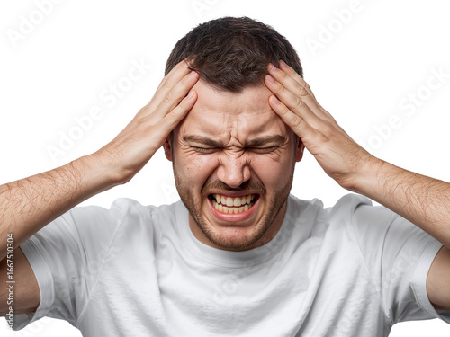Naklejka premium Intense Migraine Agony Manifesting on Man's Face During an Isolated Head Pain Incident