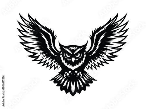 © Shazzad, Obraz premium Intense owl with wings spread in flight illustration
