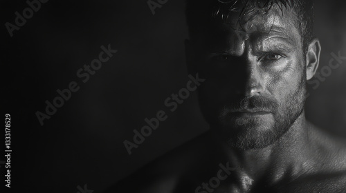 Fototapeta premium Intense portrait of athletic man with fierce gaze and defined features