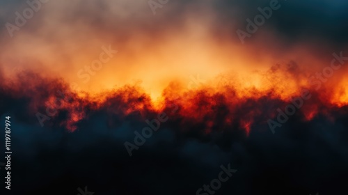 © MetaPixel, Naklejka premium Intense red and orange flames create a dramatic fire effect, surrounded by swirling black smoke against a darkened sky, depicting strong heat distortion and atmospheric haze, fire, smoke, danger, inte