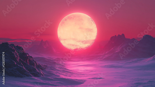 Fototapeta premium Intense red sunset filling the sky with dramatic colors as day turns to night