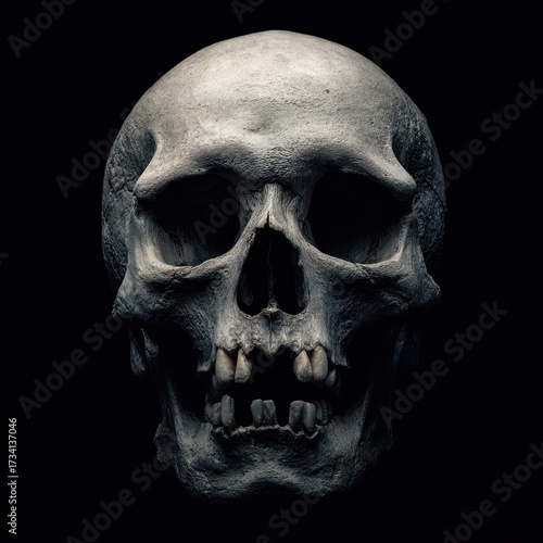 Obraz premium Intense Skull Imagery: Striking Representation of a Human Skull on a Dark...