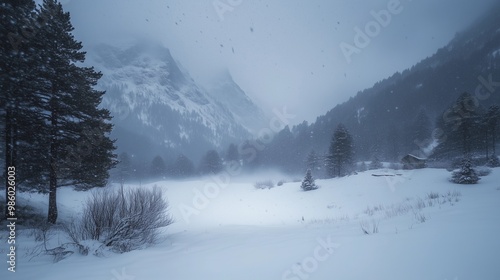 Obraz premium Intense snowstorm in mountain landscape