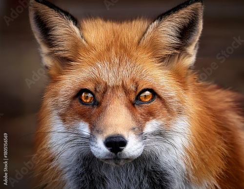 © Murad, Fototapeta premium Intense Stare of a Red Fox: A Captivating Close-Up of a Wild Animal with Amber Eyes and Beautiful Fur