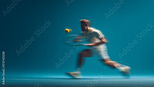 Fototapeta premium Intense tennis player man in dynamic sport action. powerful motion blur shows speed of professional athlete