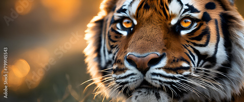 © BreezeWorks, Naklejka premium Intense Tiger Gaze at Golden Hour by the Water, Generative AI