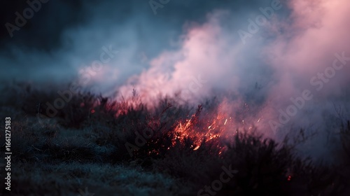 © Thares2020, Obraz premium Intense wildfire raging through a forest with smoke and flames rising from the ground