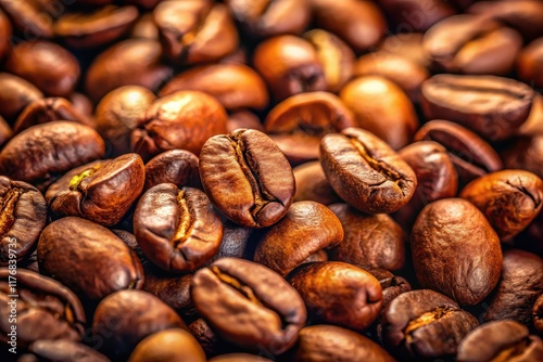 © Autun, Fototapeta premium Intensely roasted coffee beans: a tilt-shift masterpiece. Ideal for advertising. Download now.
