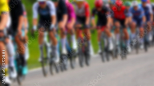 Obraz premium Intentionally blurred group of cyclists riding racing bikes during...