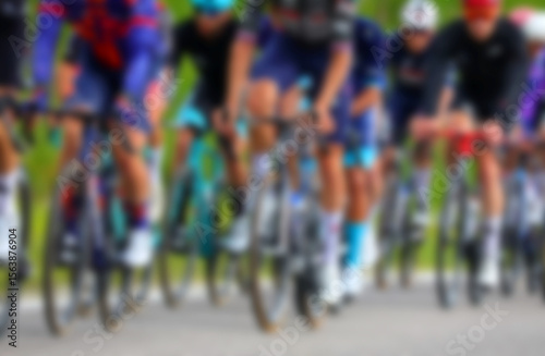 Fototapeta premium Intentionally blurred group of many professional cyclists energetically...