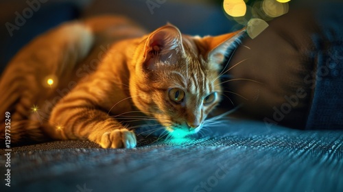 Naklejka premium Interactive Cat Laser Toy: A laser pointer that moves randomly, automatically engaging cats in playful chases, providing hours of entertainment and exercise.