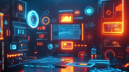 Obraz premium Interactive data visualization digital workspace infographic futuristic design overview technology trends