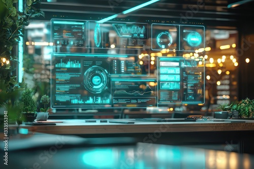 © Muhammad, Fototapeta premium Interactive feedback dashboards in urban workspace