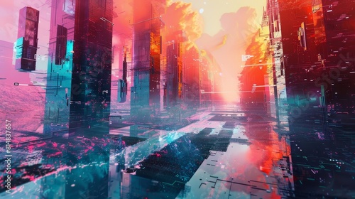 Naklejka premium Interactive interfaces in virtual reality landscape