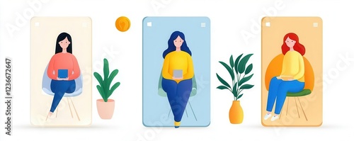 © WeeraWanderlust, Fototapeta premium Interactive leadership training app interface, modern approach to skill-building, flat design illustration
