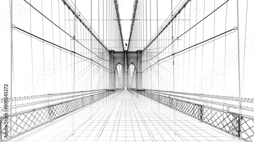 © sukrit, Naklejka premium Interactive mesh wireframe of a suspension bridge, focusing on cables and towers