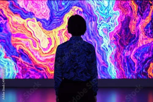 © saichon, Fototapeta premium Interactive projection mapping in a dark environment, vibrant digital artwork