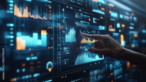 Obraz premium Interactive Technology Interface Showcasing Advanced Data Visualization and Analytics Trends