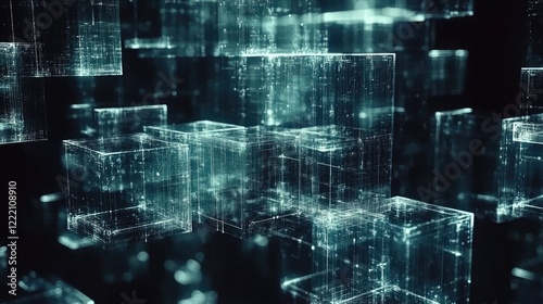 Obraz premium Interconnected abstract data cubes in a digital space, showcasing futuristic...