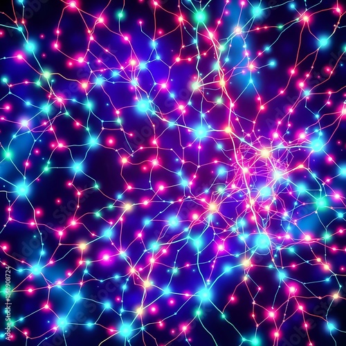 Fototapeta premium Interconnected Bioluminescent Nodes: Art Nouveau Cybernetic Aesthetic