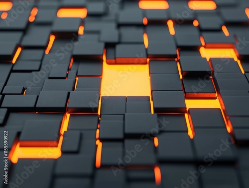 Obraz premium Interconnected blocks revealing light, abstract puzzle illustration