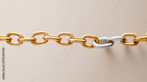 Obraz premium Interconnected Chain Links Displaying Unity with One Distinct Silver Link Against a Soft Beige Background
