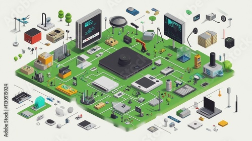 © jambulart, Fototapeta premium Interconnected devices, technology network, isometric view.