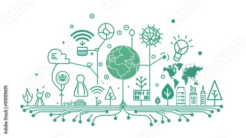 © pkproject, Fototapeta premium Interconnected Earth With Roots And Leaves Showcasing Global Sustainability And Ecological Harmony