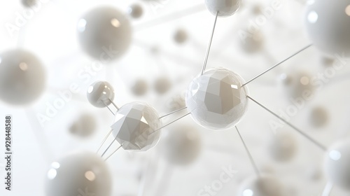 © Mr image, Obraz premium 23. Interconnected, floating spheres and polygons forming a complex geometric structure against a white canvas.