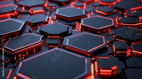 Obraz premium Interconnected Hexagonal Patterns in Futuristic Digital Landscape