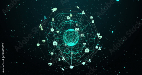 © vectorfusionart, Obraz premium Interconnected icons glowing on futuristic digital network interface display