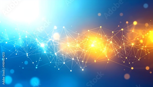 Fototapeta premium Interconnected network nodes glow against blue