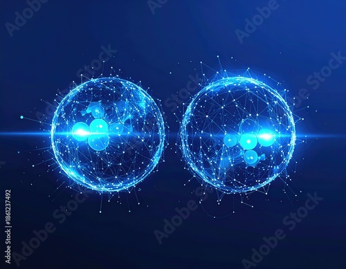 © Soto, Obraz premium Interconnected spheres glow with digital, blue light