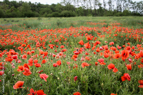 Fototapeta premium interessantes Mohnblumenfeld im Sommer