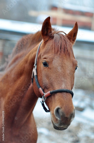 © Дина Попова, Obraz premium Interested look adult red stallion