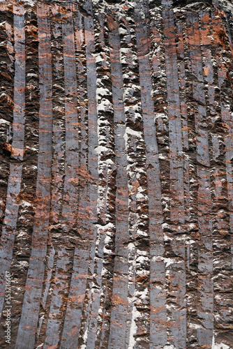 © Cveja, Obraz premium Interesting traces on coal made by the excavator during its operation. Visible result of excavator digging.